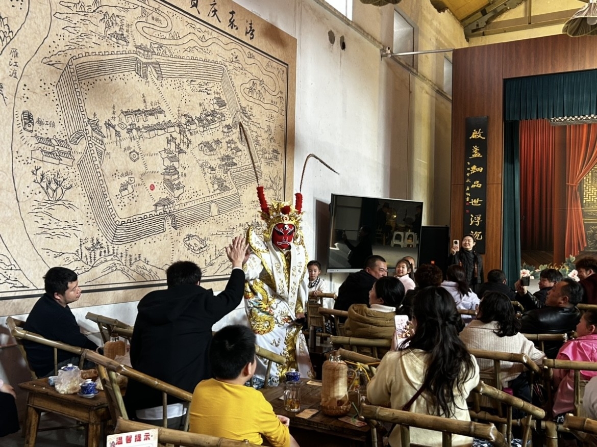 春节假期,在雁江区小北街33号的可以观戏剧仓内,李大爷带着小孙子连续三次“打卡”。川剧变脸吐火、金钱板清脆作响,老粮仓变身人气地标。从腊月二十八到正月初五,锣鼓声与欢笑声在老街巷里交织回荡。