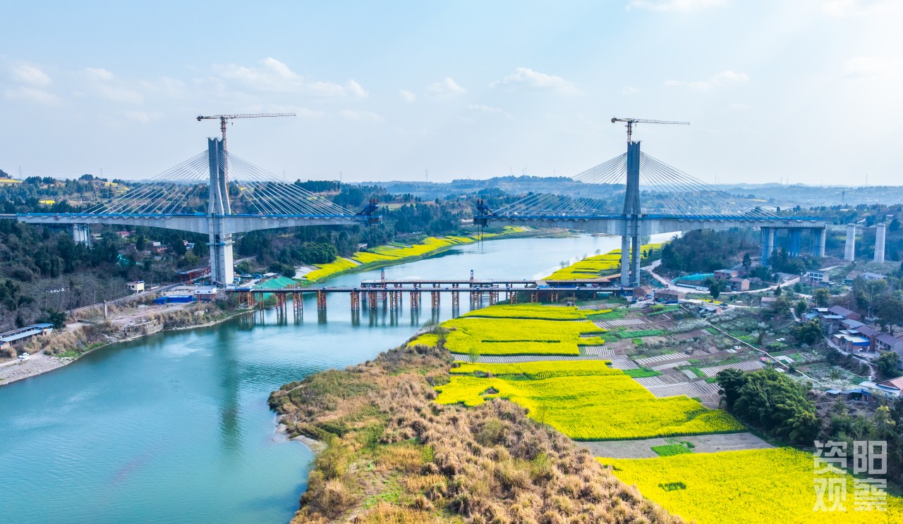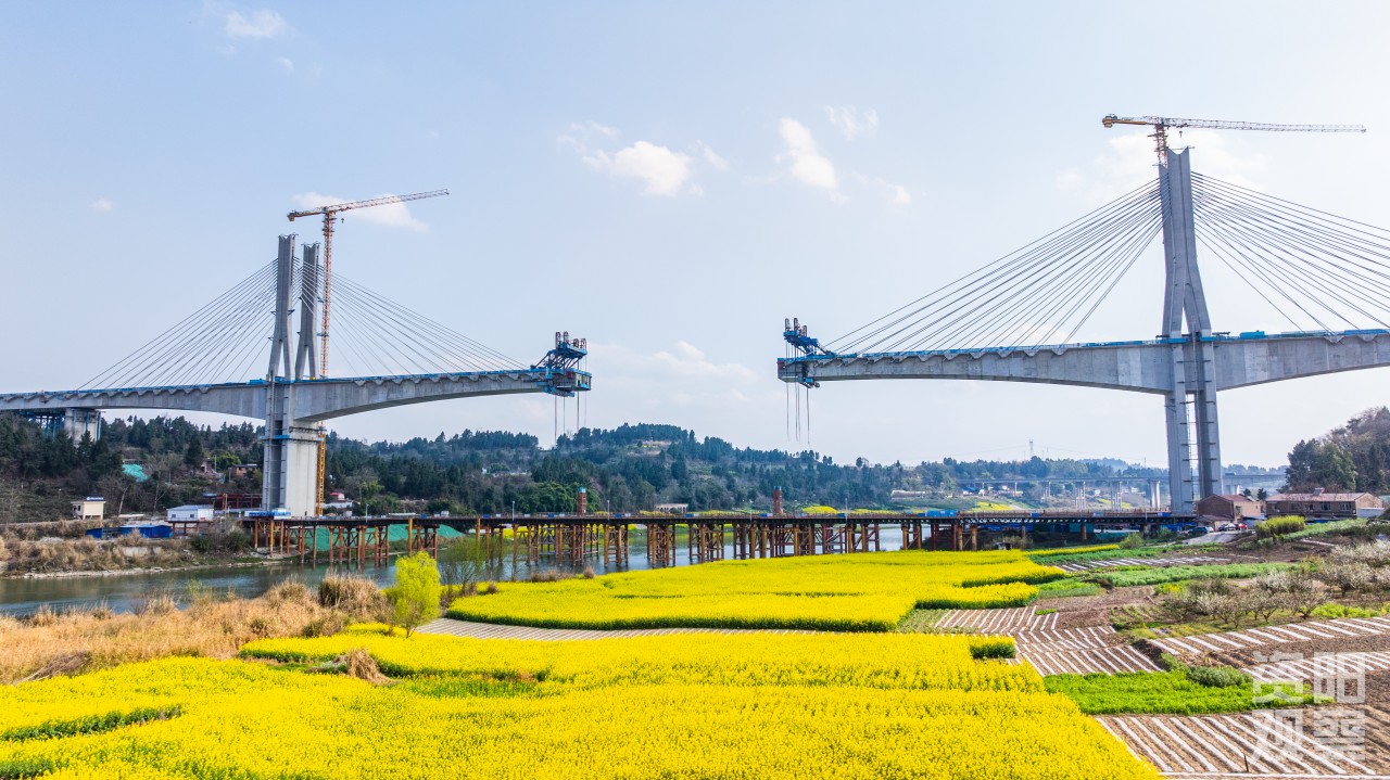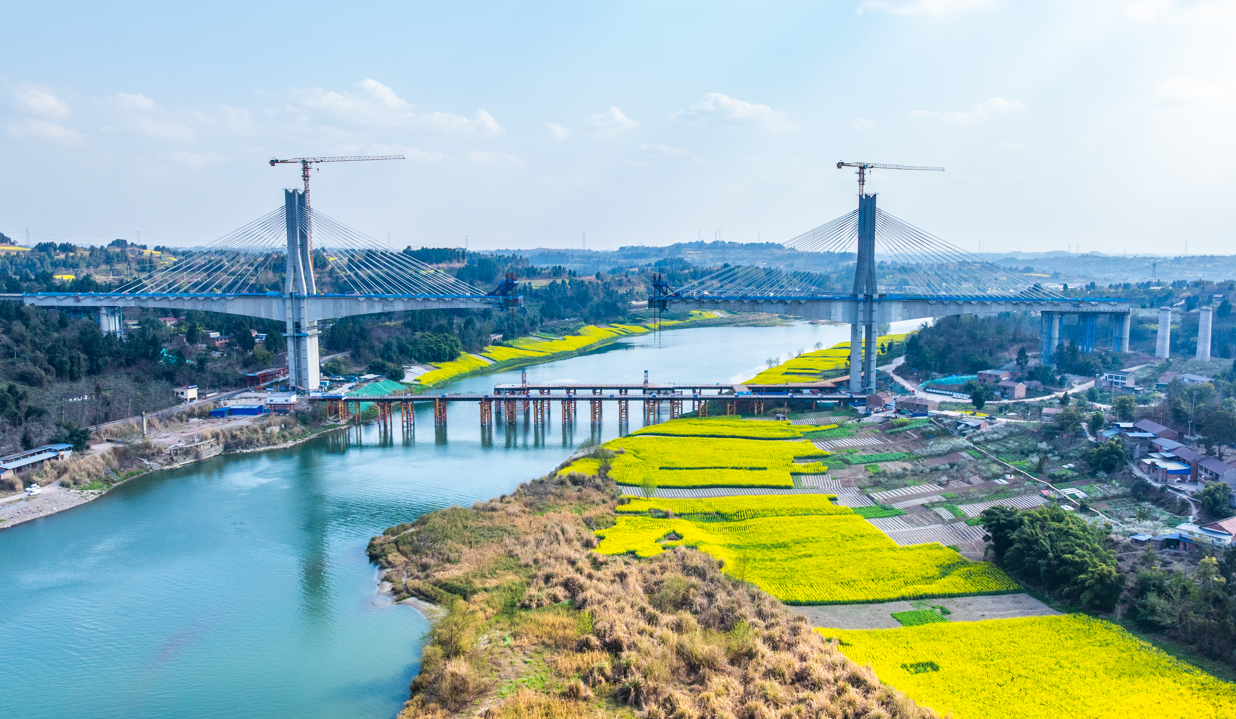 漫步金滩村,沱江两岸的油菜花田率先映入眼帘,100余亩金黄花海在微风中翻涌,与碧绿的沱江水相映成趣,绵延的花浪一直铺向远方,全村630余亩油菜花次第绽放,让整个村庄都浸润在春日的芬芳里。正在修建中的成达万高铁跨河而过,现代化的建设图景与田园花海相融,成为金滩村春日里一道独特的风景线。
