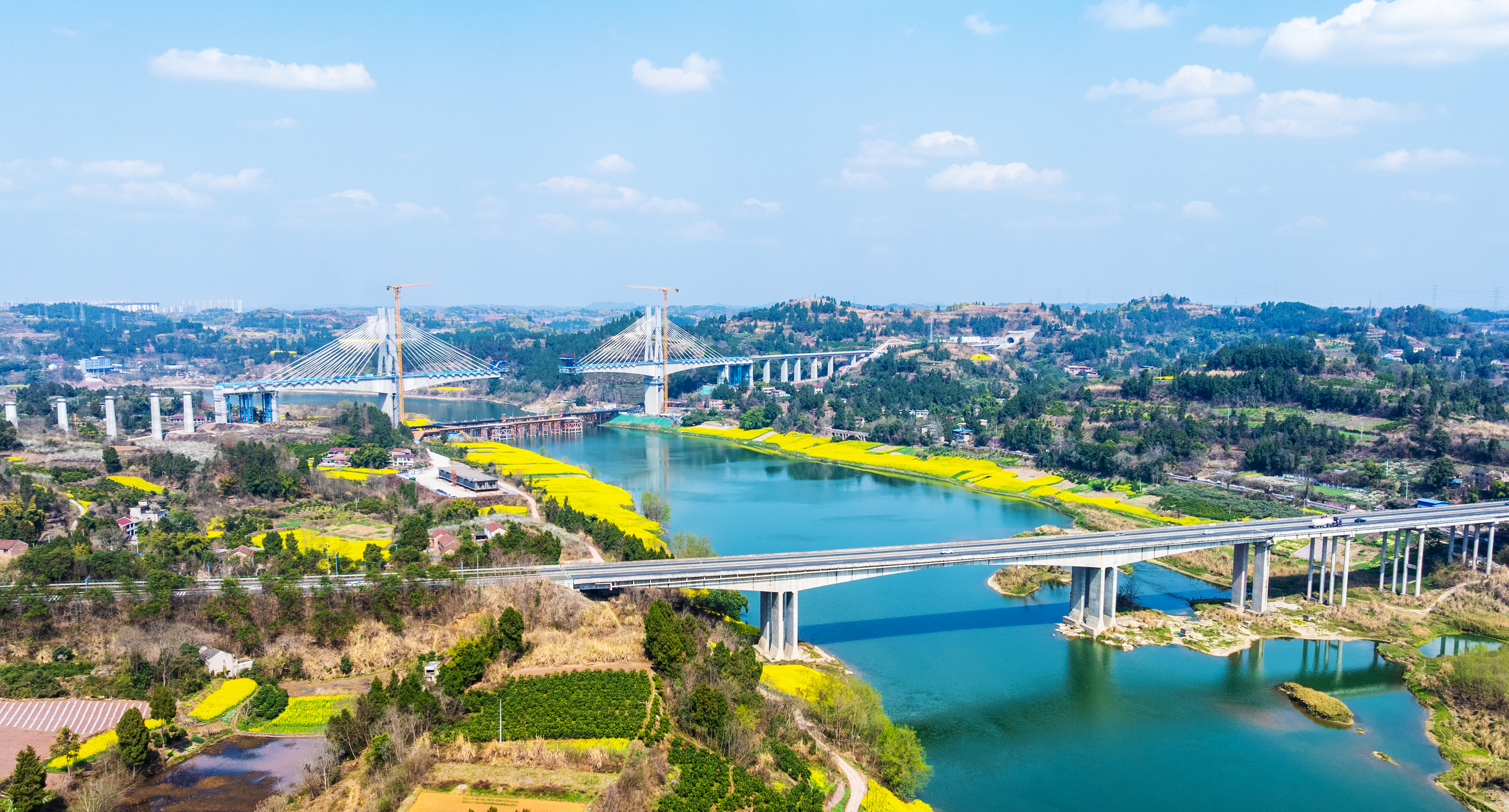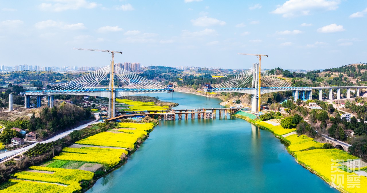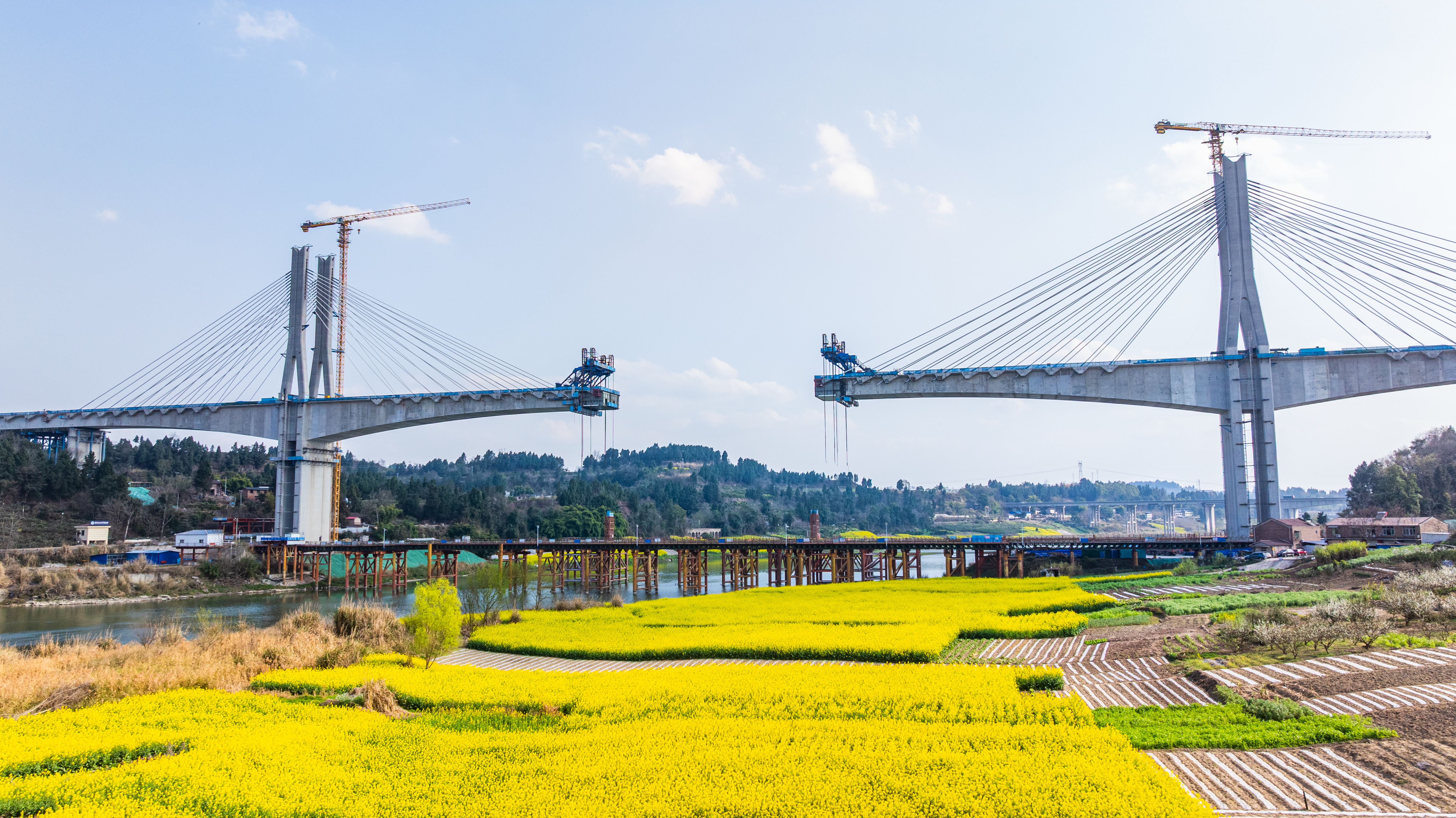 漫步金滩村,沱江两岸的油菜花田率先映入眼帘,100余亩金黄花海在微风中翻涌,与碧绿的沱江水相映成趣,绵延的花浪一直铺向远方,全村630余亩油菜花次第绽放,让整个村庄都浸润在春日的芬芳里。正在修建中的成达万高铁跨河而过,现代化的建设图景与田园花海相融,成为金滩村春日里一道独特的风景线。