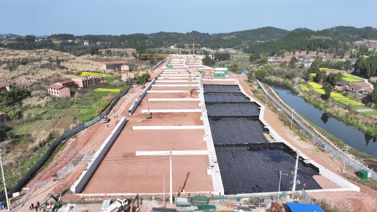 镜头转向安岳县城东北,另一项关乎城市发展和生态民生的工程同样火热。在安岳县城市生活污水处理厂再生水循环利用项目现场,一片规模宏大的人工湿地轮廓初显,工人们正进行着土工膜铺装等精细作业。