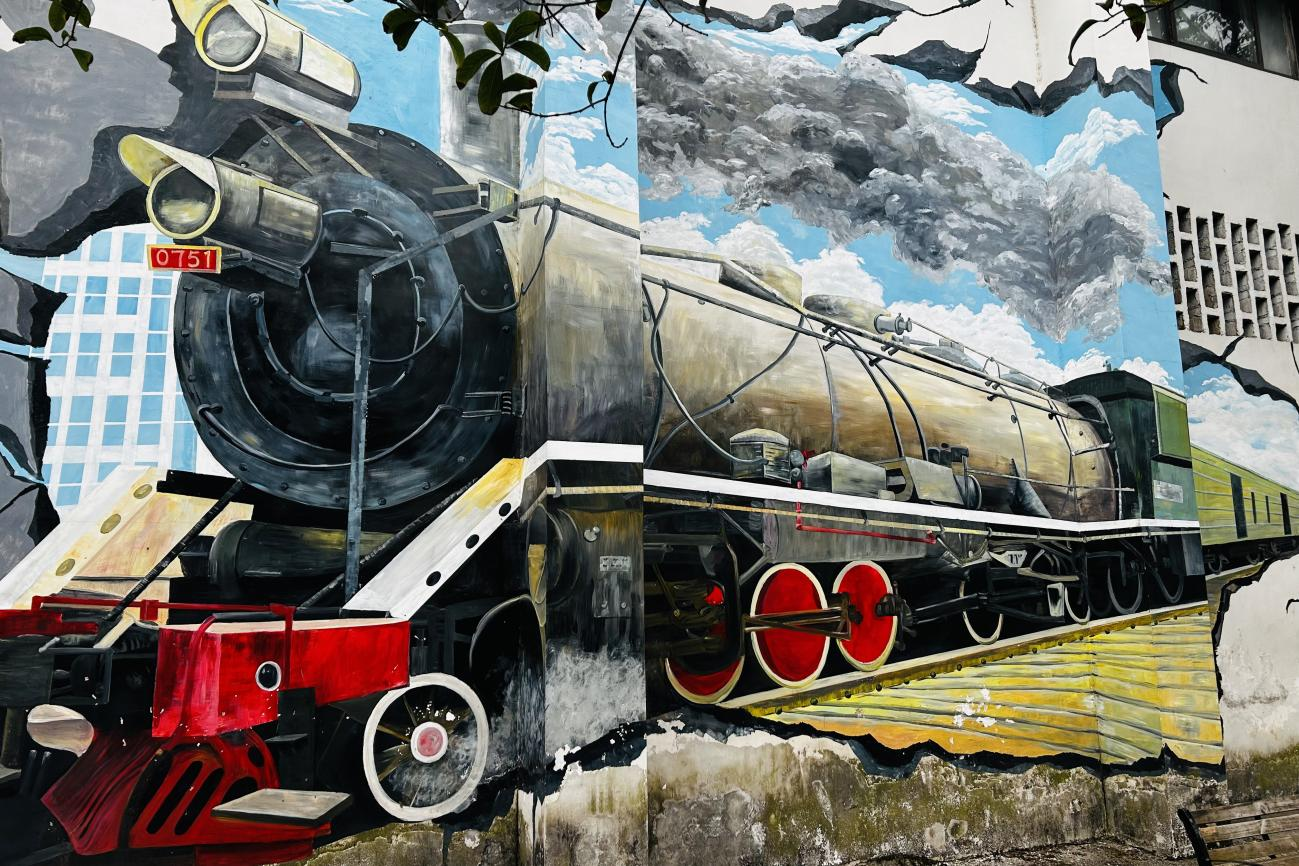巡游开始前,可以先逛逛旁边的向阳社区,这里有复刻的火车专列和生动的火车墙绘,是几代资阳人出发与归来的缩影。