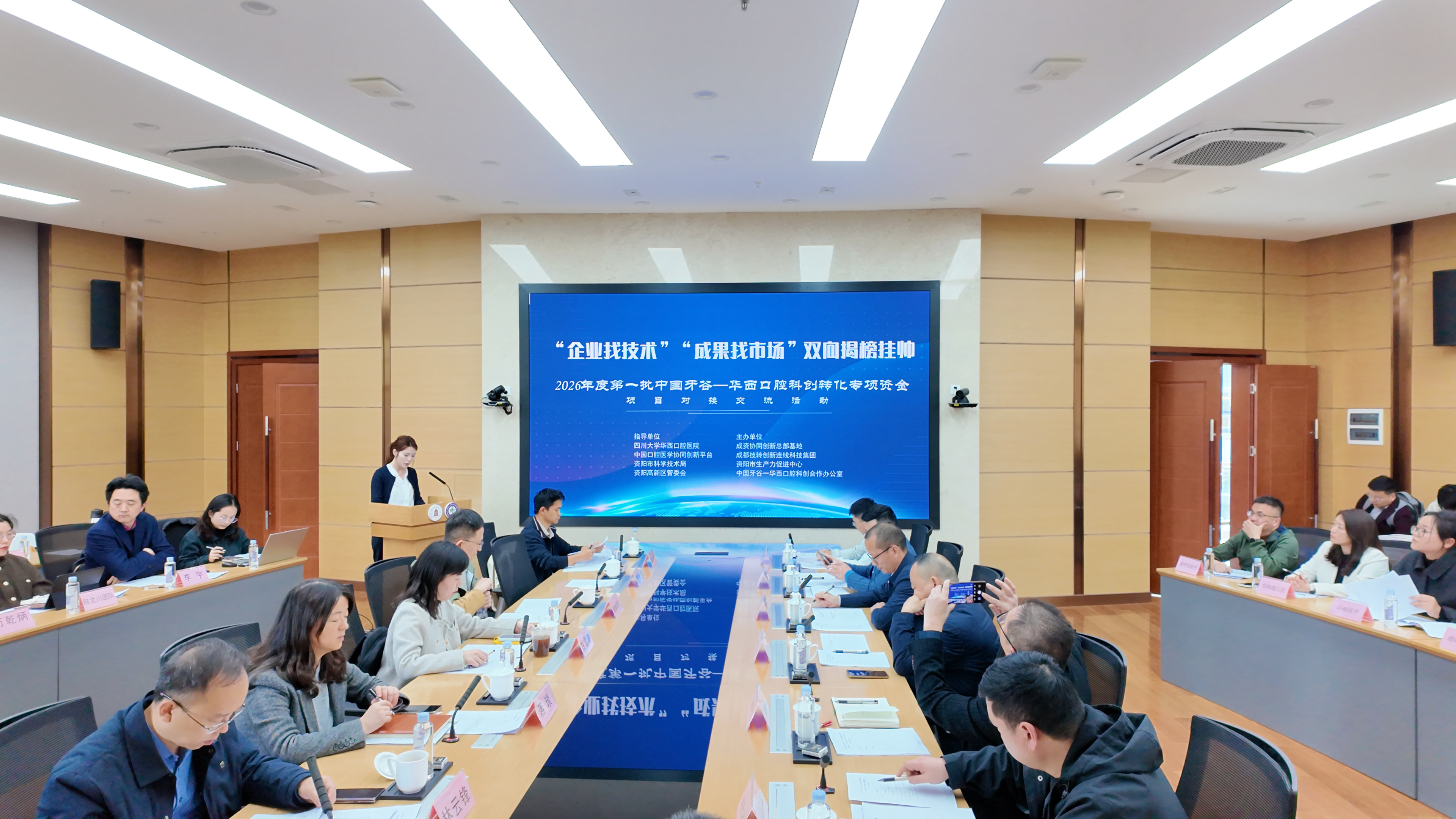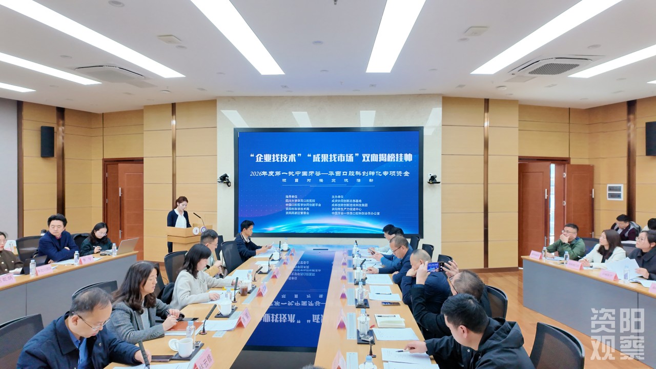 3月10日,2026年度第一批中国牙谷—华西口腔科创转化专项资金“企业找技术”“成果找市场”双向揭榜挂帅项目对接交流活动在四川大学华西口腔医院举行。活动由四川大学华西口腔医院、资阳市科学技术局、资阳高新区管委会主办,通过搭建高校科研团队与产业企业间的直通桥梁,推动口腔医学领域产学研用深度融合,让高校的科研成果与企业的迫切需求实现“面对面”精准对接。