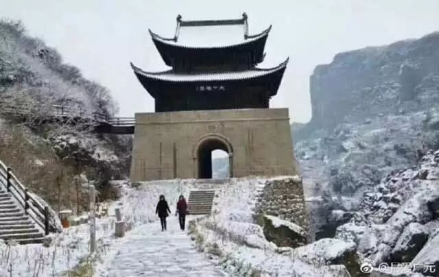 走进雪花纷飞的剑门关景区,仿佛仙境般美丽。台阶上、山石上,到处都是银装素裹的景象,宛若“北国风光”。