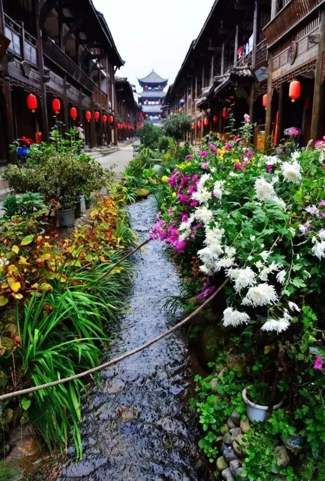 青色的石板,自然地拼放在一起。沿着这条小径行走,我仿佛穿越时光,回到了过去宁静的时光。