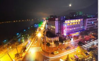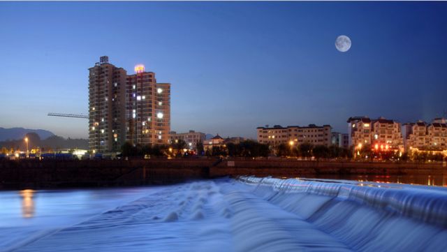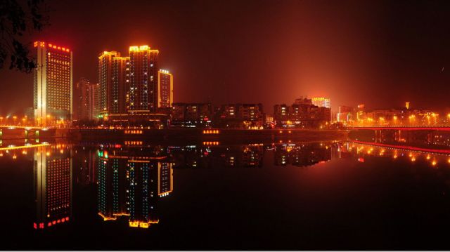 夜晚,小城五彩斑斓的霓虹灯,压倒了月亮的光芒,只剩下淡淡的月晕。