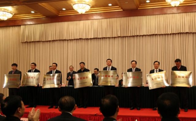 ▲2017年12月14日,广元市委书记王菲在成都领受“文明城市”牌匾