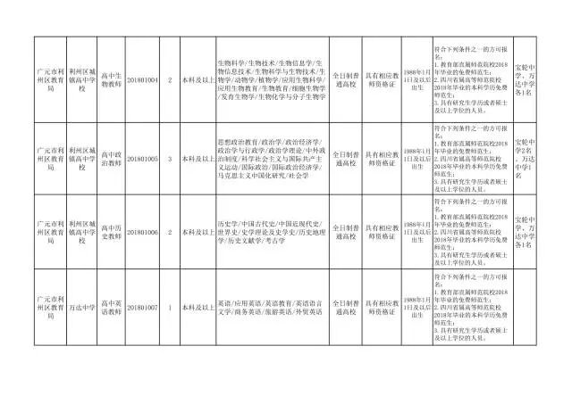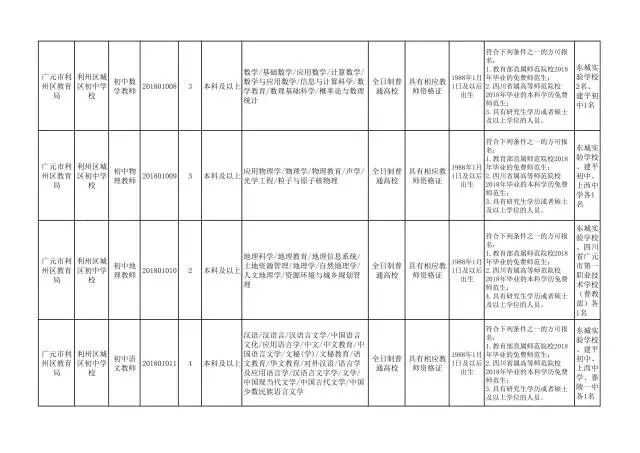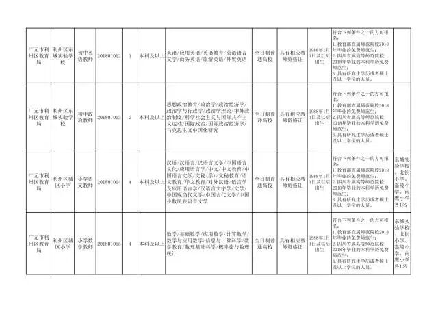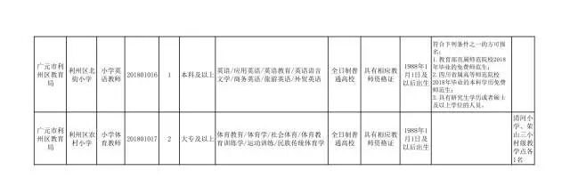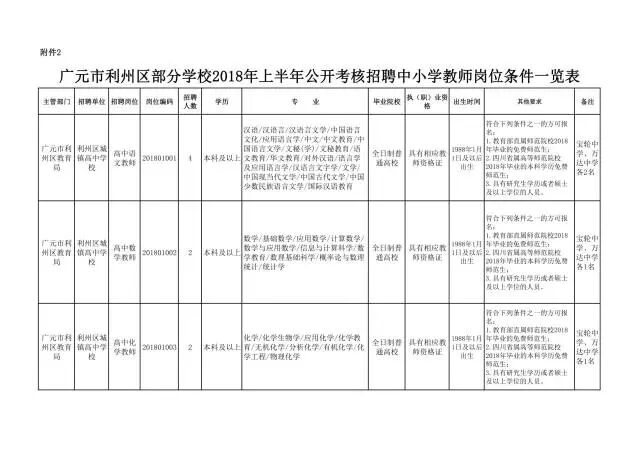 利州区部分学校2018年上半年公开考核招聘中小学教师岗位条件一览表
