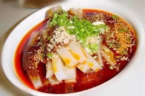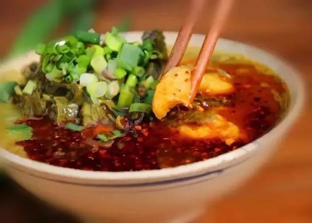 在熟油辣子酸菜汤或熟油辣子醋椒汤中蘸