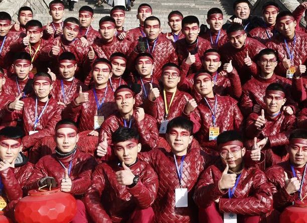 因为龙是中华民族的图腾,参加泰安分会场的1900名演员来自山东四个学校,身穿演出前在北京赶制的统一的银色刺绣龙袍。为更有气势和气魄,演员均为男性,妆容也较去年有重大调整,为凸显山东大汉的魁梧豪迈,较去年的凉山分会场少了嘴部妆容。张天奇说,“70个来自山东各地的化妆师同时开化,眉毛统一为剑眉,增添了英武之气!”