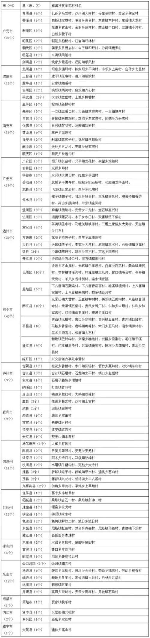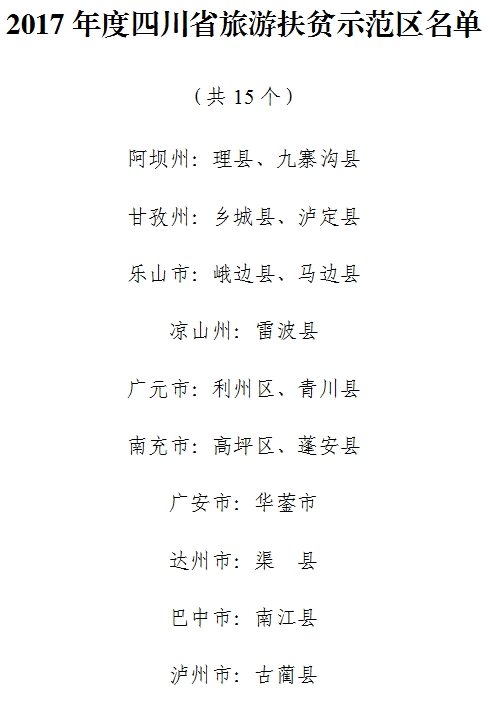 据悉,此次全省共有15个县(区)、194个村分别入选2017年度四川省级旅游扶贫示范区、村。