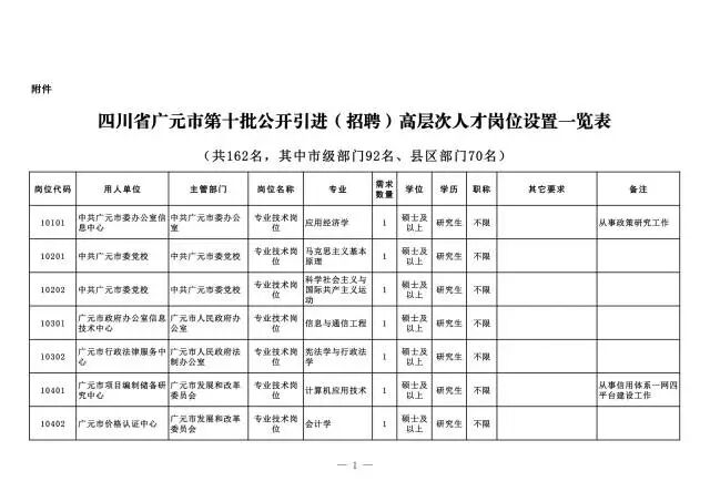 广元市将公开引进162名高层次人才啦!