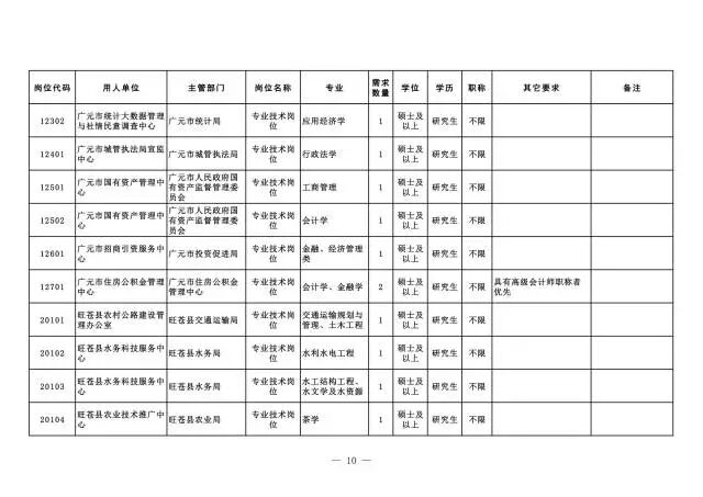 四川省广元市第十批公开引进(招聘)